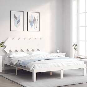 vidaXL Seng Ramme med huvudgavel vit 5FT King Size massivt trä 3193732