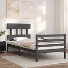 vidaXL Seng Ramme med huvudgavel grå 90x200 cm massivt trä 3195143