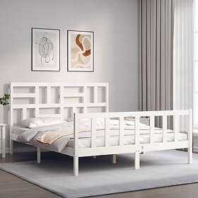 vidaXL Seng Ramme med huvudgavel vit 5FT King Size massivt trä 3193082