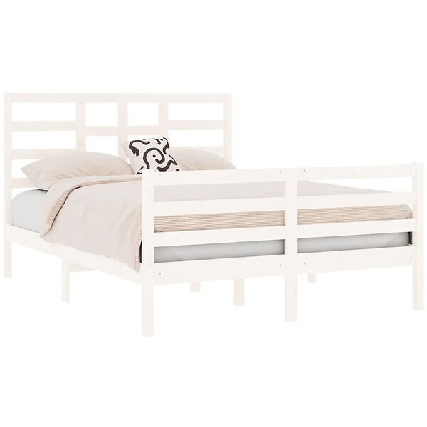 vidaXL Seng Ramme vit massivt trä 135x190 cm 4FT6 3105836