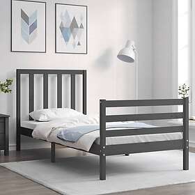 vidaXL Seng Ramme med huvudgavel grå 90x200 cm massivt trä 3193778