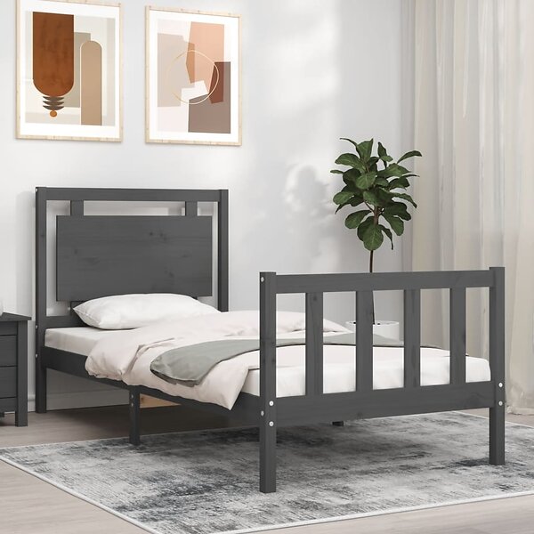 vidaXL Seng Ramme med huvudgavel grå 90x200 cm massivt trä 3192153