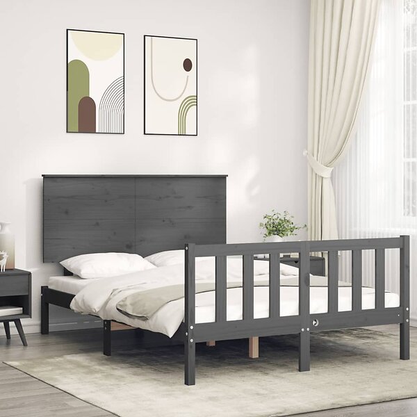 vidaXL Seng Ramme med huvudgavel grå 140x190 cm massivt trä 3193383