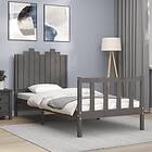 vidaXL Seng Ramme med huvudgavel grå 90x200 cm massivt trä 3192283