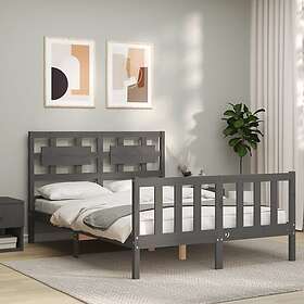 vidaXL Seng Ramme med huvudgavel grå 140x190 cm massivt trä 3192538