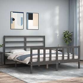 vidaXL Seng Ramme med huvudgavel grå 160x200 cm massivt trä 3191918