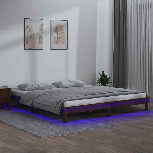 vidaXL Seng Ramme LED honungsbrun 200x200 cm massivt trä 820629