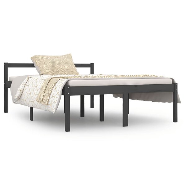 vidaXL Seng Ramme grå massiv furu 135x190 cm 4FT6 810591