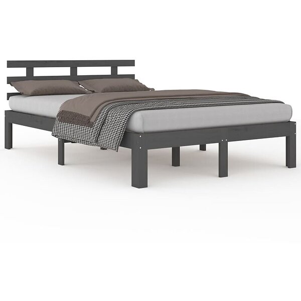 vidaXL Seng Ramme grå massivt trä 135x190 cm 4FT6 814731