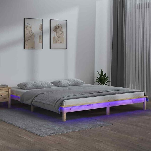 vidaXL Seng Ramme LED 160x200 cm massivt trä 820616
