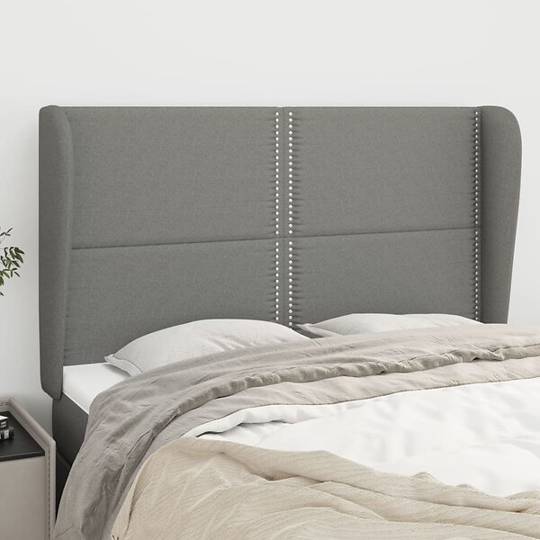 vidaXL Sengegavl med kanter mörkgrå 147x23x118/128 cm tyg 3117815