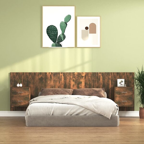 vidaXL Sengegavl med lådor rökfärgad ek konstruerat trä 3115713