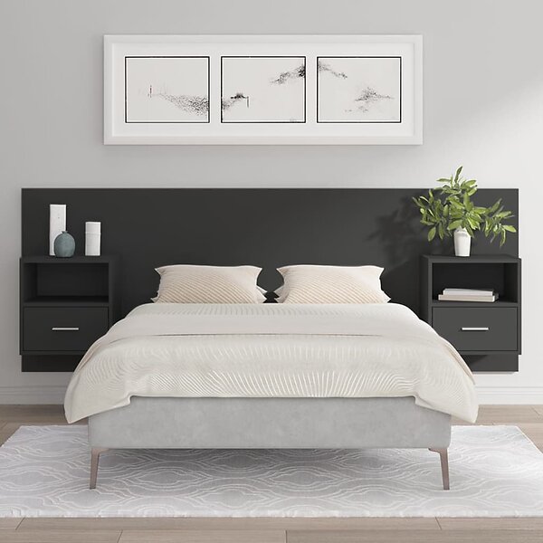 vidaXL Sengegavl med lådor svart konstruerat trä 3115693