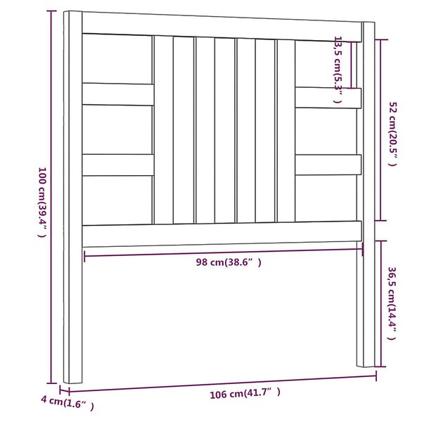 vidaXL Sengegavl 106x4x100 cm massiv furu 817825