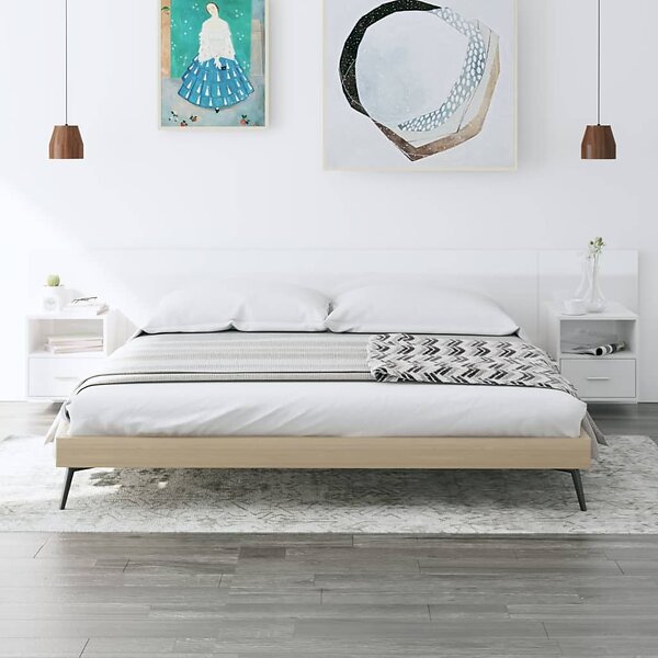 vidaXL Sengegavl med lådor vit högglans konstruerat trä 3115744