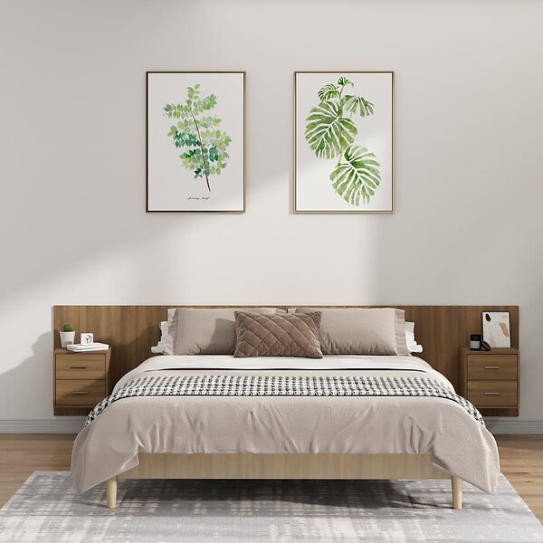 vidaXL Sengegavl med lådor brun ek konstruerat trä 3115763