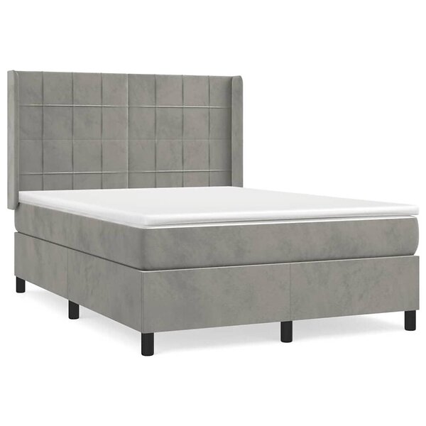 vidaXL Mattress base med madrass ljusgrå 140x190 cm sammet 3132675