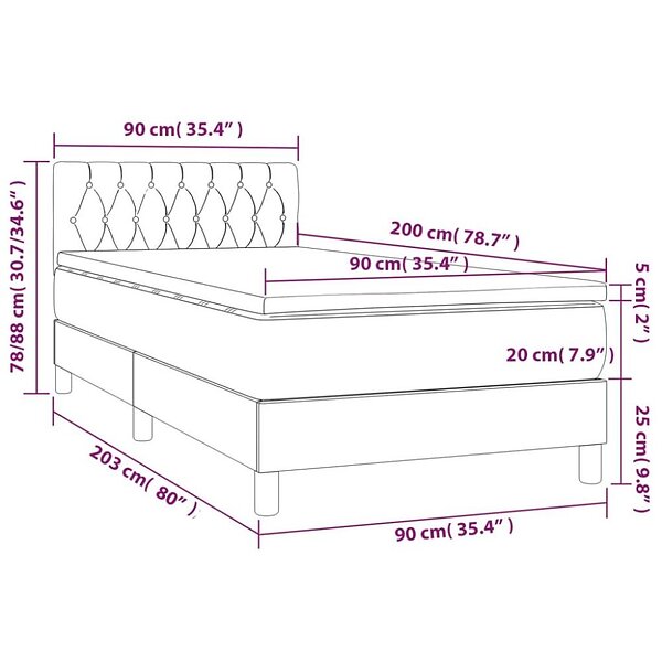 vidaXL Mattress base med madrass mörkgrå 90x200 cm tyg 3140826