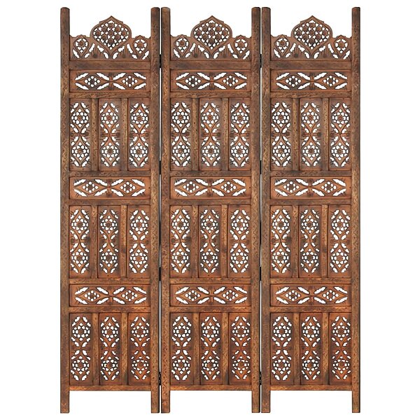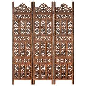 vidaXL 3-panels rumdeler håndskåret 120 x 165 cm massivt mangotræ brun