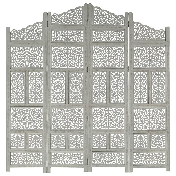 vidaXL Rumdeler 4 paneler håndskåret grå 160x165 cm mangotræ 285328