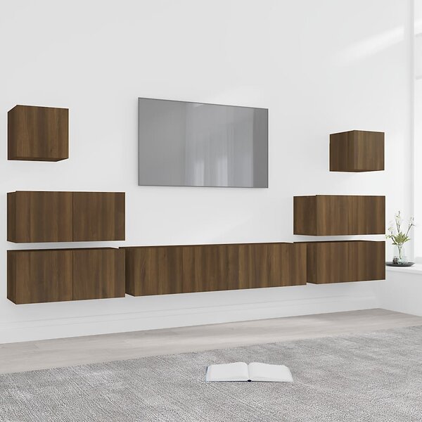 vidaXL Tv-skåp 8 delar brun ek konstruerat trä 3120292
