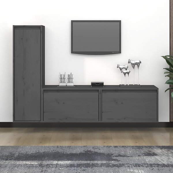 vidaXL TV-bænk 3 st grå massiv furu 3100121
