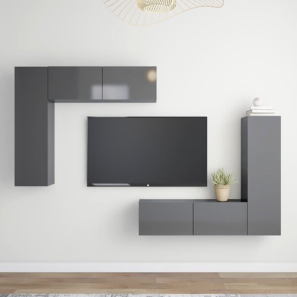 vidaXL TV-skåp 4 delar grå högglans spånskiva 3079530