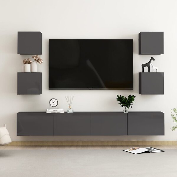 vidaXL TV-skåp 6 delar grå högglans spånskiva 3079503