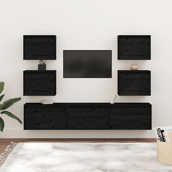 vidaXL TV-bænk 7 st svart massiv furu 3100228