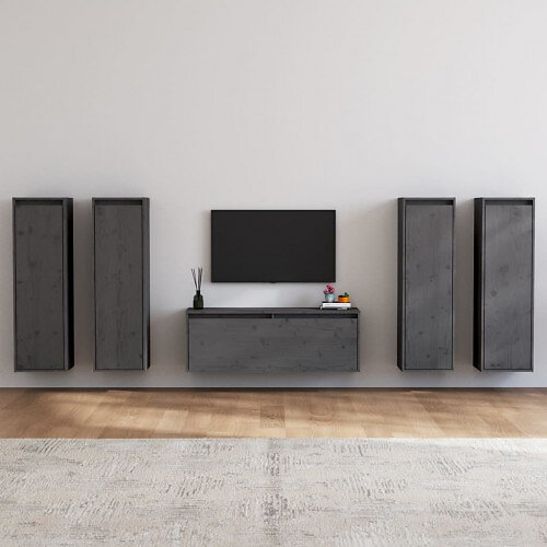 vidaXL TV-bænk 3 st grå massiv furu 3100211
