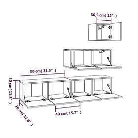 vidaXL TV-bord 4 stk Grå Sonoma konstrueret træ 3114652