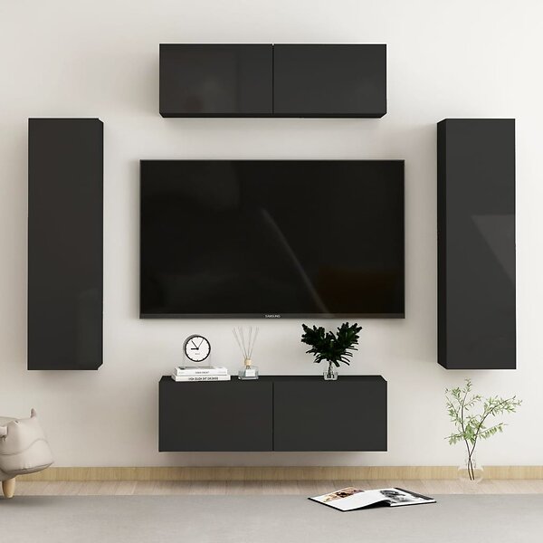 vidaXL TV-skåp 4 delar svart högglans konstruerat trä 3079402