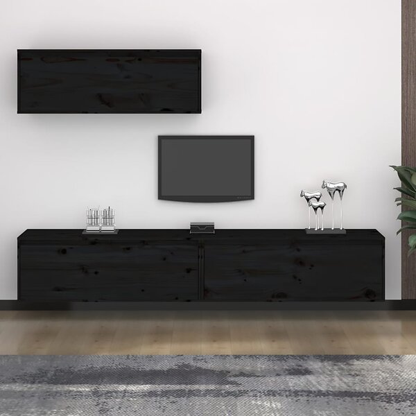 vidaXL TV-bænk 3 st svart massiv furu 3100143