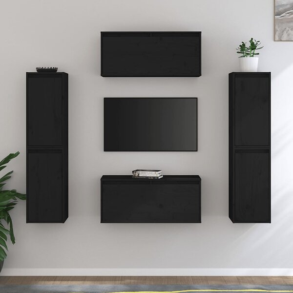 vidaXL TV-bænk 6 st svart massiv furu 3100268
