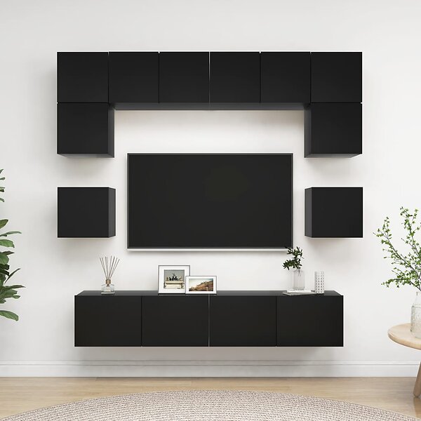 vidaXL TV-skåp 8 delar svart spånskiva 3078796