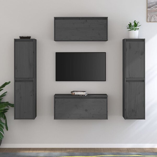 vidaXL TV-bænk 6 st grå massiv furu 3100266