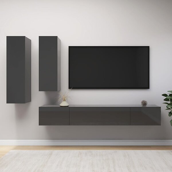 vidaXL TV-skåp 4 delar grå högglans spånskiva 3079573