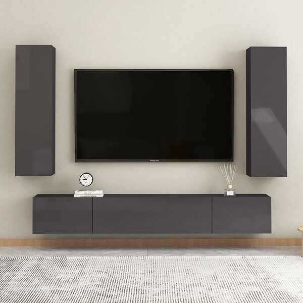 vidaXL TV-skåp 4 delar grå högglans spånskiva 3079485