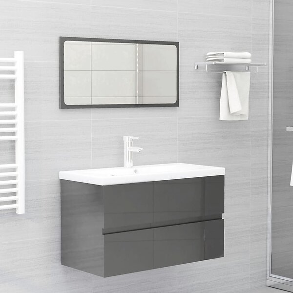 vidaXL Badrumsmöbler set 2 delar grå högglans spånskiva 804889