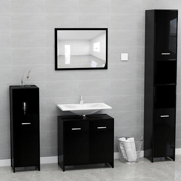 vidaXL Badrumsmöbler set svart högglans konstruerat trä 802586