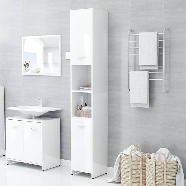 vidaXL Badrumsskåp vit högglans 30x30x183.5 cm spånskiva 802603