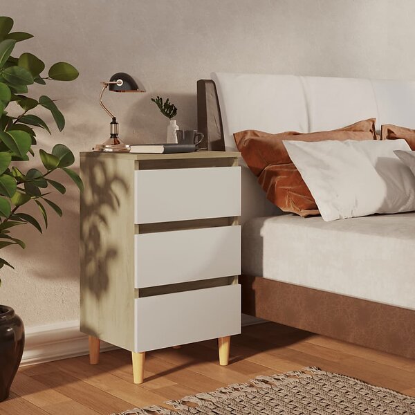 vidaXL Sängbord med ben i massivt trä sonoma-ek 40x35x69 cm 805897