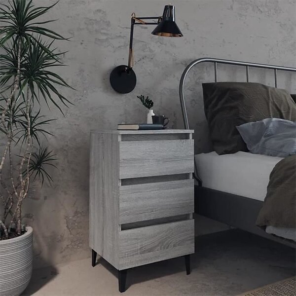vidaXL Sängbord med metallben grå sonoma-ek 40x35x69 cm 813142