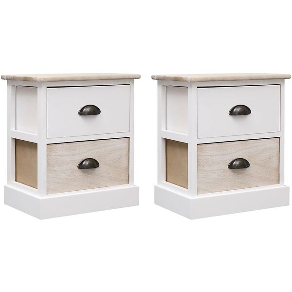 vidaXL Natbord 2 stk Hvid og Naturligt Træ 38x28x45cm Paulownia Træ 284057
