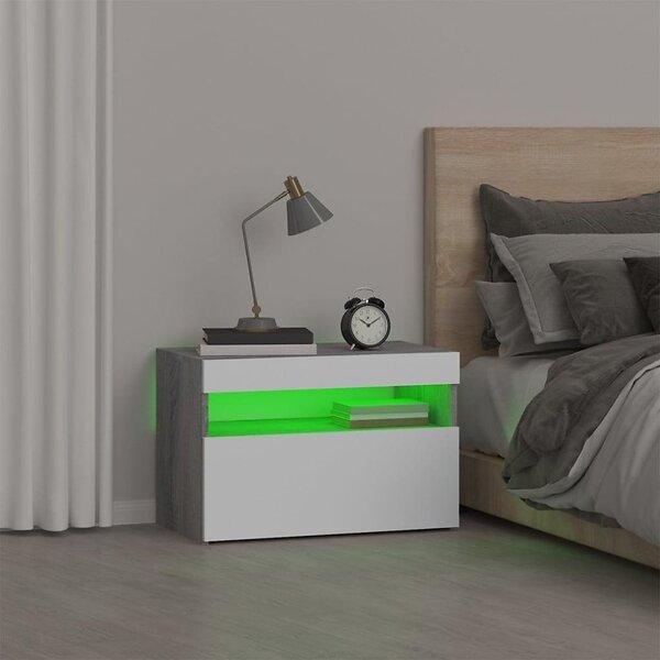 vidaXL Sängbord med LED-belysning grå sonoma 60x35x40 cm 3152828