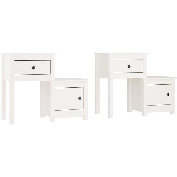 vidaXL Sängbord 2 st vit 79.5x38x65.5 cm massiv furu 814542