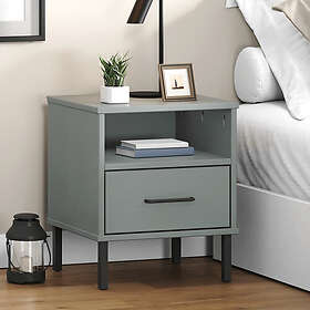 vidaXL Sängbord med metallben OSLO grå massiv furu 350971