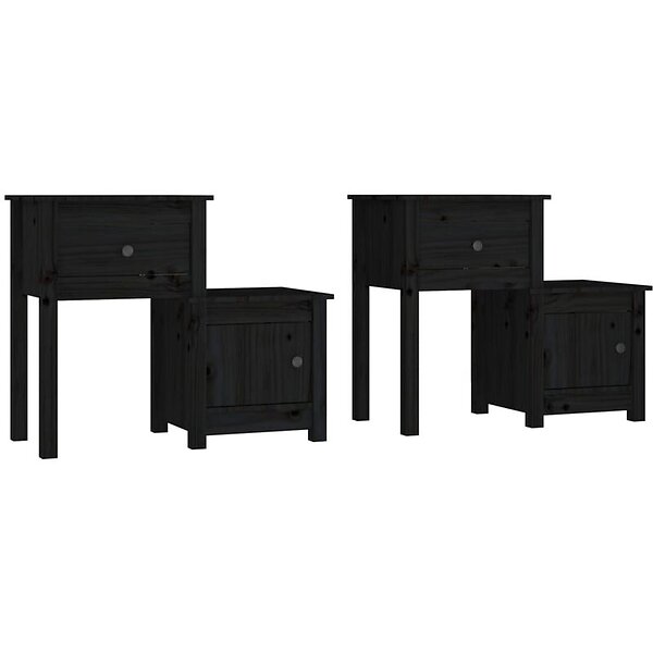vidaXL Sängbord 2 st svart 79.5x38x65.5 cm massiv furu 814548