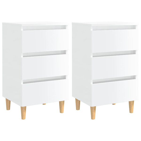 vidaXL Sängbord med ben i massivt trä 2 st vit högglans 40x35x69cm 805900