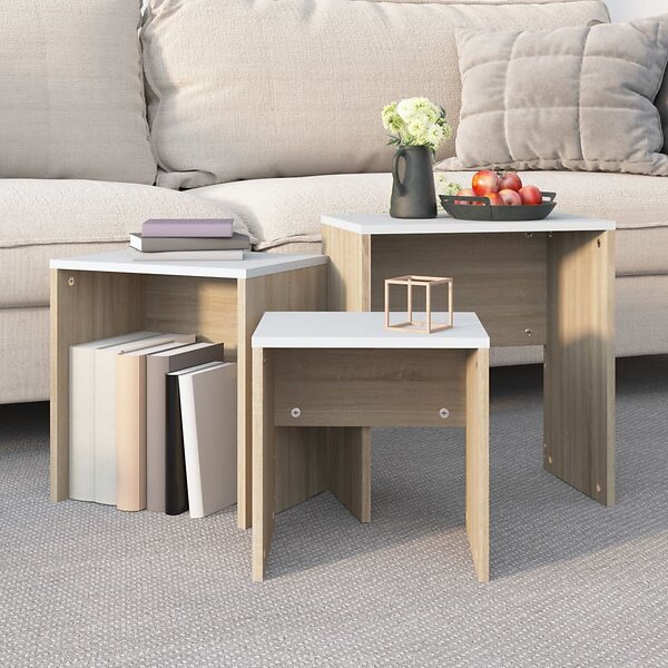vidaXL Satsbord 3 st vit och sonoma-ek konstruerat trä 808536